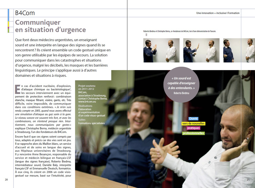 Ci-dessous quelques extraits de photographies mises en pages dans l’ouvrage « Elles et ils innovent! ».